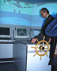 Суда, которые предстоит опробовать студентам, тоже совершенно конкретны. Это траулеры проектов 503, 1288 и Моонзунд. Погрешность поведения тренажера по сравнения с реальными судами не превышает 10%. Учитывается масса параметров - обводы корпуса, параметры руля и движителя и прочего, о чем сухопутным людям лучше и не задумываться.