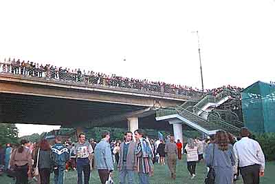 Купив билеты попадаем на остров, где будут разворачиватьс основные события. Попадаем по понтонному мосту. Те, кто предпочел смотреть открытие не тратя на это свои сбережения остаются на материке.