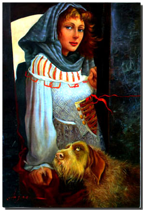 Девушка с псом, 1994 холст, масло 90*70 см находится в частном собрании