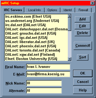 настроить Mirc для работы с нашим